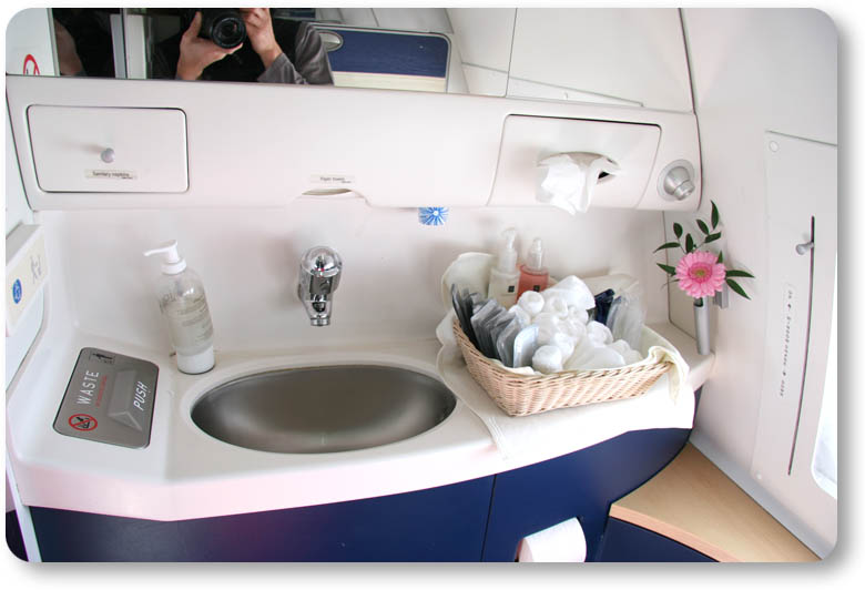 スウェーデンへ戻ってくるときに搭乗したスカンジナビアン航空ビジネスクラスをちょっとだけご覧ください。食事は大して美味しいと思いませんでしたが、トイレは素晴らしかったです。エコノミークラスのたぶん3倍くらい(感覚的に)の広さと、大きな窓からの景色と光がトイレを居心地の良い場にしてくれました。花(造花ではなく本物)が生けられていて、また驚きました。