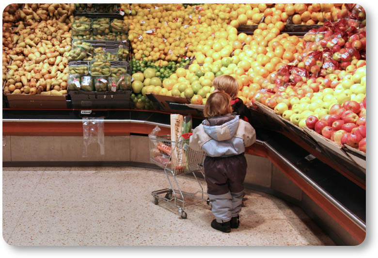 そう、この二人はまだ子供なんです。推定4歳前後(笑)。スウェーデンのスーパーには大抵、この様な子供用のショッピングカートもあって親と一緒に買い物をしています。これには付いていませんが、大人の背丈ほどもある旗が付いていて遠くからでも目立つようになっています。