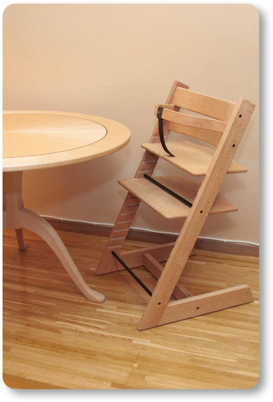 色々な子供椅子を調べた結果、どう考えてもこの椅子しかないと結論づけました。子育て誌での誌上テストでもダントツの評価でした。というか、驚きなのはこのストック社が出している別の製品以外は全てが”使用するな”という超厳しい評価だったんです。
