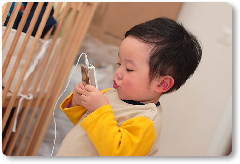 初めてiPodを触った時(ちょうど一歳の頃)、モユルはいきなりiPodを床にガツガツと打ち付けるという暴挙に出たのですが、成長した今はパパが悲鳴をあげる行動を慎む様になりました(笑)。それ(iPod 15G)は僕の弟へ譲りましたが今でも無事に動いている事でしょう(たぶん)。