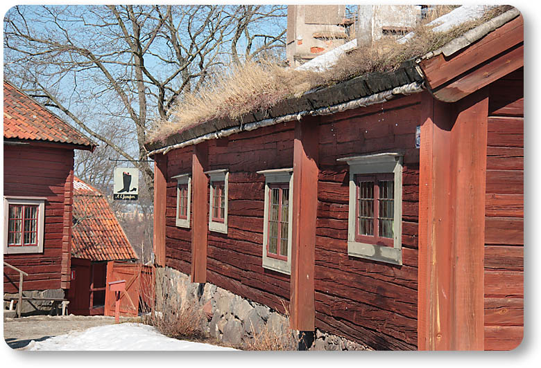 いかにもスウェーデンらしい、赤い塗装が特徴の古いスウェーデン建築。かなり明るいのにISO400で撮影したのは特別な意味があるわけではなく、単に直前の設定を解除し忘れたからです。今後も、この様な事があるだろうけど、指摘しないでくださいね〜。