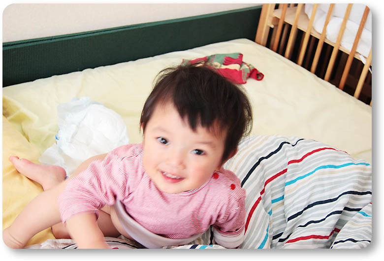 答えは、”オムツ交換から逃げまくるモユル”でした。