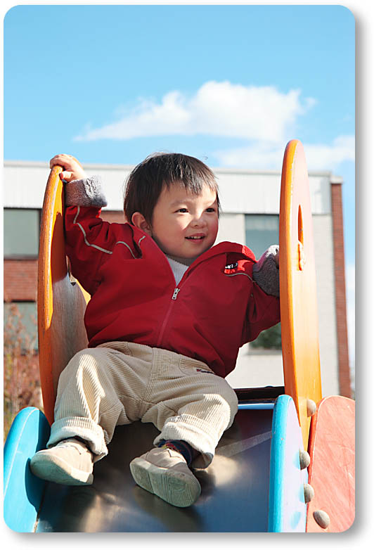 この日は普段より早めに帰ってきたので、ママと三人でお散歩。モユルの大好きな滑り台にもちゃんと寄っていきます。