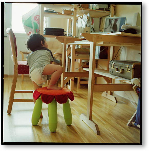 EOS 20Dだと撮影感度を簡単に上げられますが、今回はハッセルブラッド+ISO400のフィルム。最初の2枚は手持ちで撮ったのですが、かなり無茶だったので三脚を使う事にしました。が、僕の持っている物はコンパクトデジカメ用の2千円くらいで買った三脚。当然ながらハッセルブラッドを載せると簡単にしなり、倒れるリスク満点(笑)。それでも無いよりは断然マシで、安定感が増しました。
