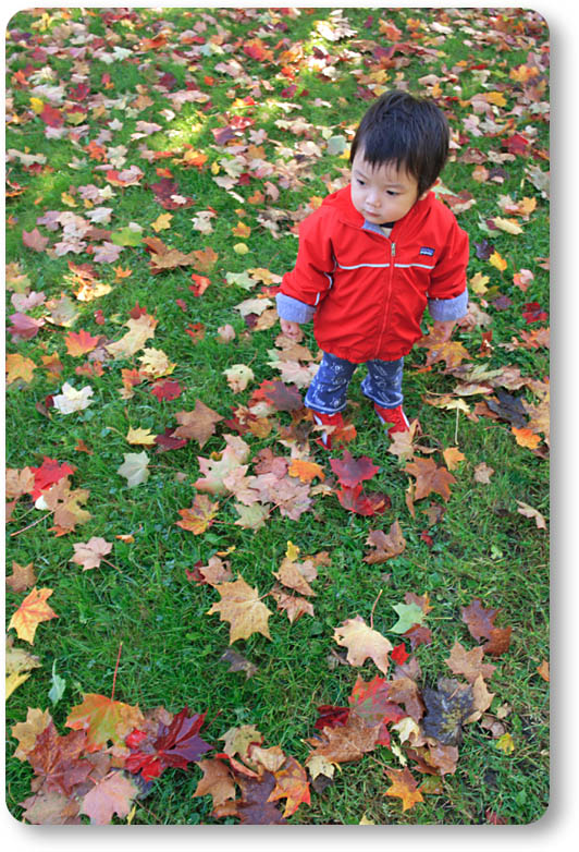 芝生と落ち葉のコントラストが綺麗だね〜。