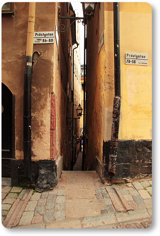 ガムラスタン(旧市街)にある、この場所は建物の間ではなく、れっきとした”道路”で、”ストックホルムで一番狭い道”なんです。