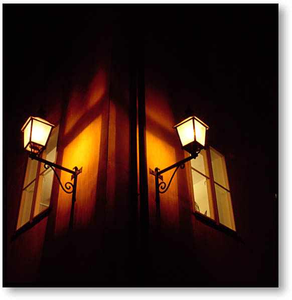 前回同様にまずはガムラスタンの街灯から。枠がそのまま壁に映っています。