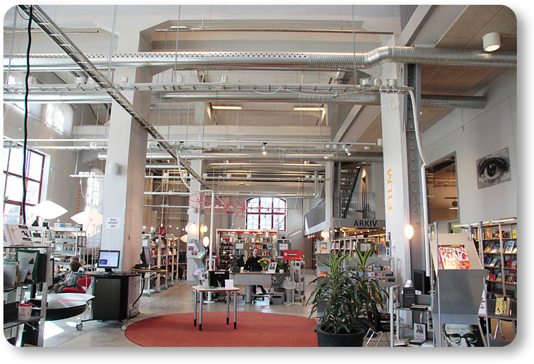 元々は工場だった建物を利用した内装になっています。図書館や、美術館、ギャラリー、コンサートホール、映画館などが集まっています。