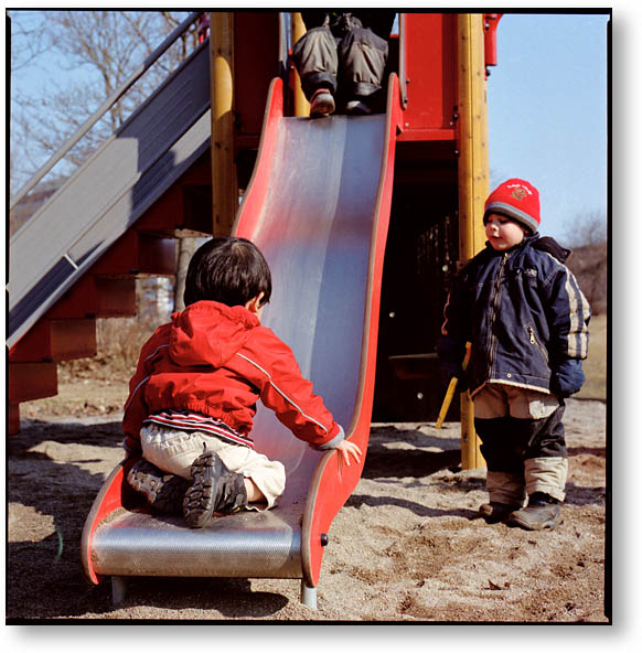 まずはプラナー110ミリで撮った写真から。たくさんの子供達と一緒に、楽しく遊ぶモユル。後がつかえているから急がないとね〜。