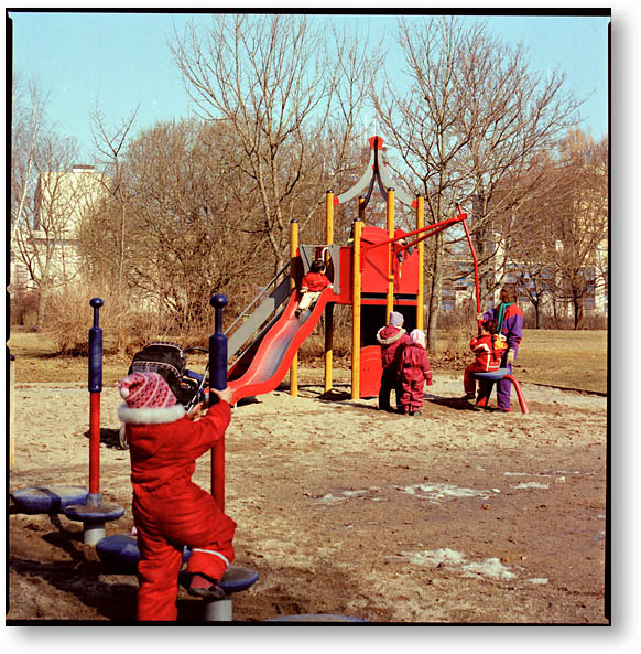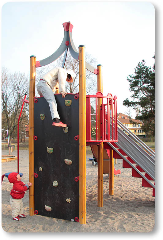 公園の遊具はこんな感じ。まだ、服装は真冬用。