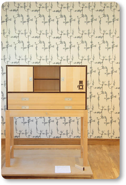 この部屋は僕の戸棚など職人試験作品を展示。右手前の机は今回、最高評価を受けた物です。