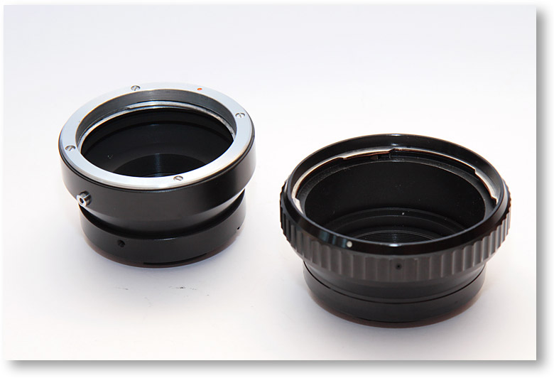 これらのレンズをEOS 20Dで使う為に必要な物がアダプター。右の物は現行のハッセルブラッドレンズ用。精度も無限遠までちゃんと出ます。左は1000/1600Fレンズ用のアダプター。ガッチリしているのですが、取り付け時にちょっとだけ前方に出ているみたいで、無限遠が出ませんでした。ちょっと残念。でも、子供達を撮影するのには必要充分です。