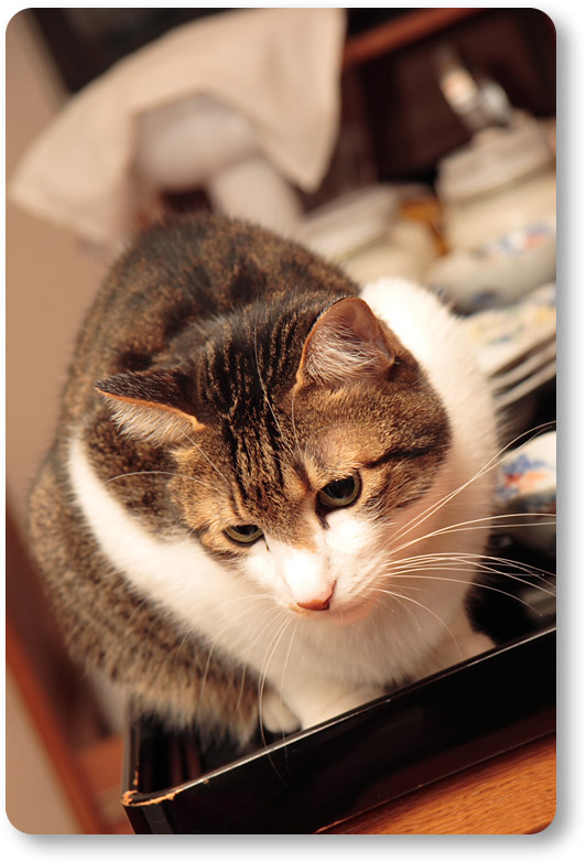 爪研ぎはちゃんと指定の場所でしてくれています(笑)。でも、以前、買ってきたばかりの椅子の籐編みの座面で爪研ぎをし始めて焦ったことがあります。結局、座面上にマットを置いて隠しています(笑)。
