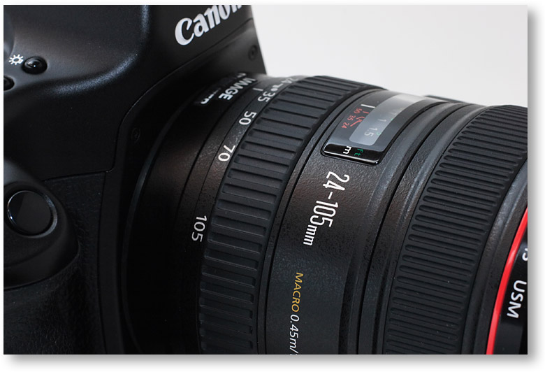 20Dで使っていたEF-S17-85mm F4-5.6と同じように常用レンズとして使おうと思っているのが、このEF 24-105mmレンズ。ズームリングと、ピントリングが前後逆だという事を最初は知らずに驚く。なぜ、レンズごとに違う構造にしているんだろう?