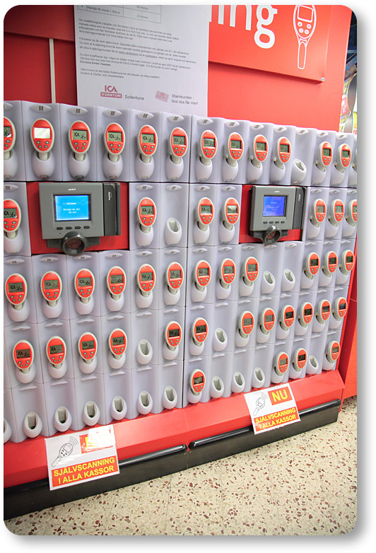 これはセルフサービス用のセンサー達。これを使って、購入商品を入力しておくと、レジでは支払いだけで済むというシステム。