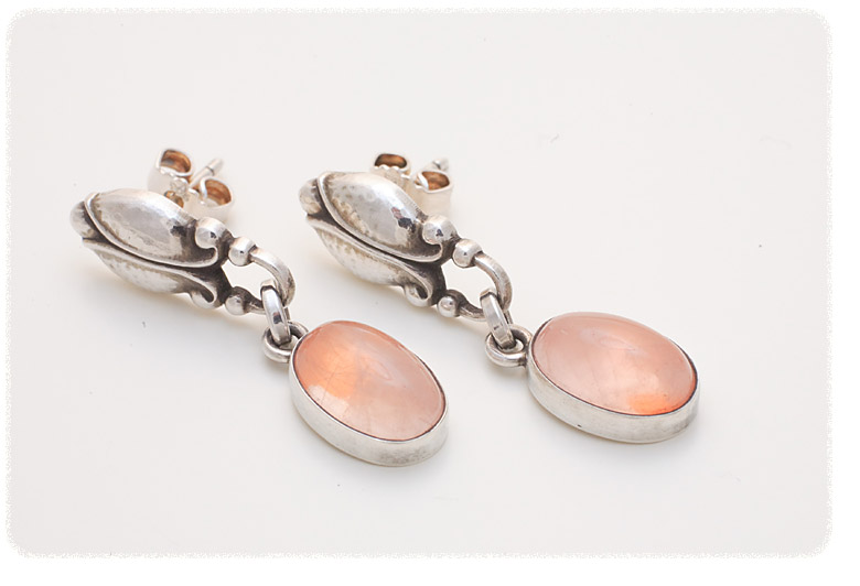 これはジョージ ジェンセン社のイヤリング。ローズクオーツ(ちょっと写真ではオレンジ寄りに見えていますが、実際は綺麗なピンク)が素敵です。