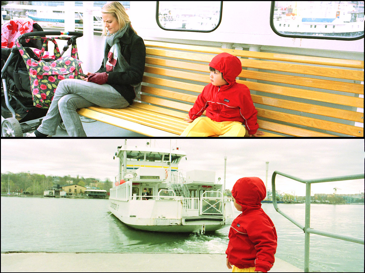 突然思いついたので、モユルを連れてストックホルムへ朝の散歩にでかけました。お供のカメラはハッセルブラッド XPan。レンズは45ミリ。撮影フォーマットは当然、パノラマで。