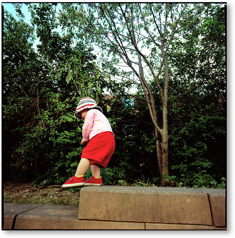 この写真、今になって考えると、段差を登っているところを撮った方が、2歳になるミチカを表現するのに良かったかも。
