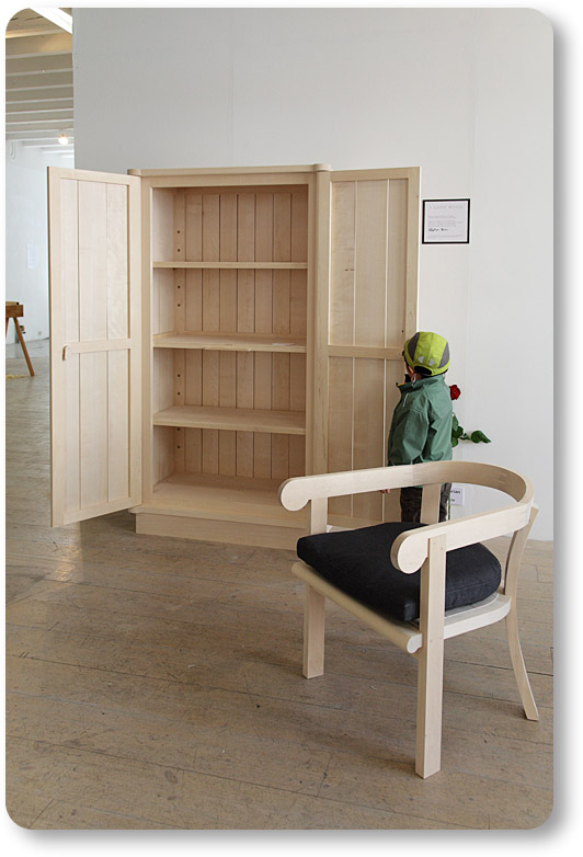 さあ、展示会場に着きました!まずは家具デザイン科のオッレの卒業作品を発見。家庭向けのワーキングベンチ(工作用の作業台)を考案しました。これは欲しい。スポンサーはSjöbergs。作業台のメーカーとして有名ですよね。商品化しないかな?