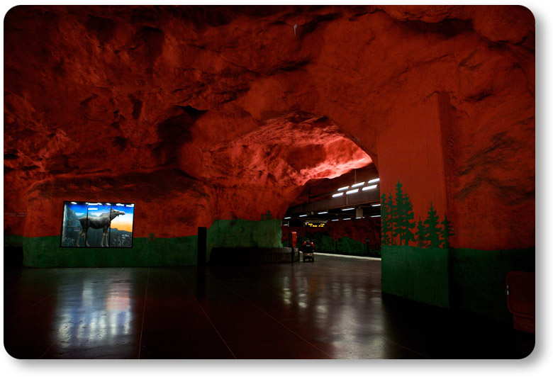 確かに日本の駅はどこも画一的でおもしろみは無いですね。でも、どこでもそれが普通だと思います。このストックホルムの地下鉄は、日本どころか他の国でもなかなか真似できないと思いますよ(笑)。