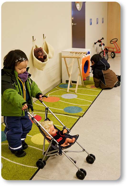 トレーニング終了後。廊下には色々なオモチャがあるので、すぐには帰らせてくれません。