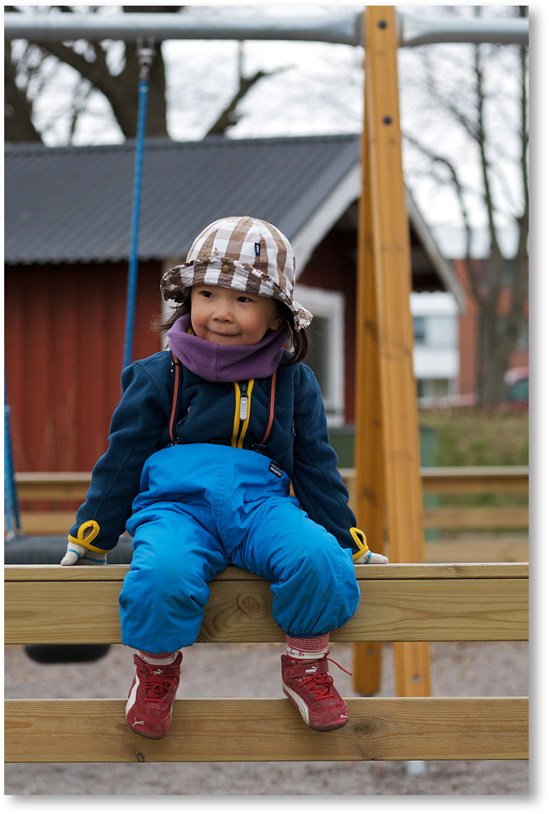 楽々、柵に登るモユルと、ヨイショヨイショと大変そうなミチカ。