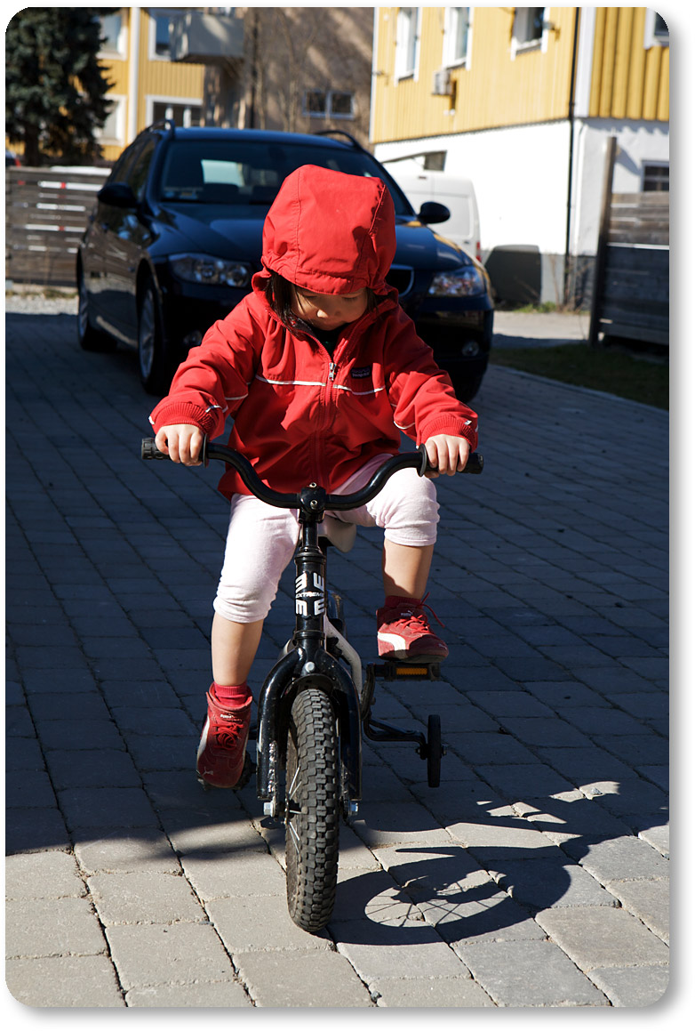 数日後、自転車の練習を始めました。これまでは三輪車ばかりだったので驚きです。ゆっくりだけど、ちゃんと漕げるようになりました。